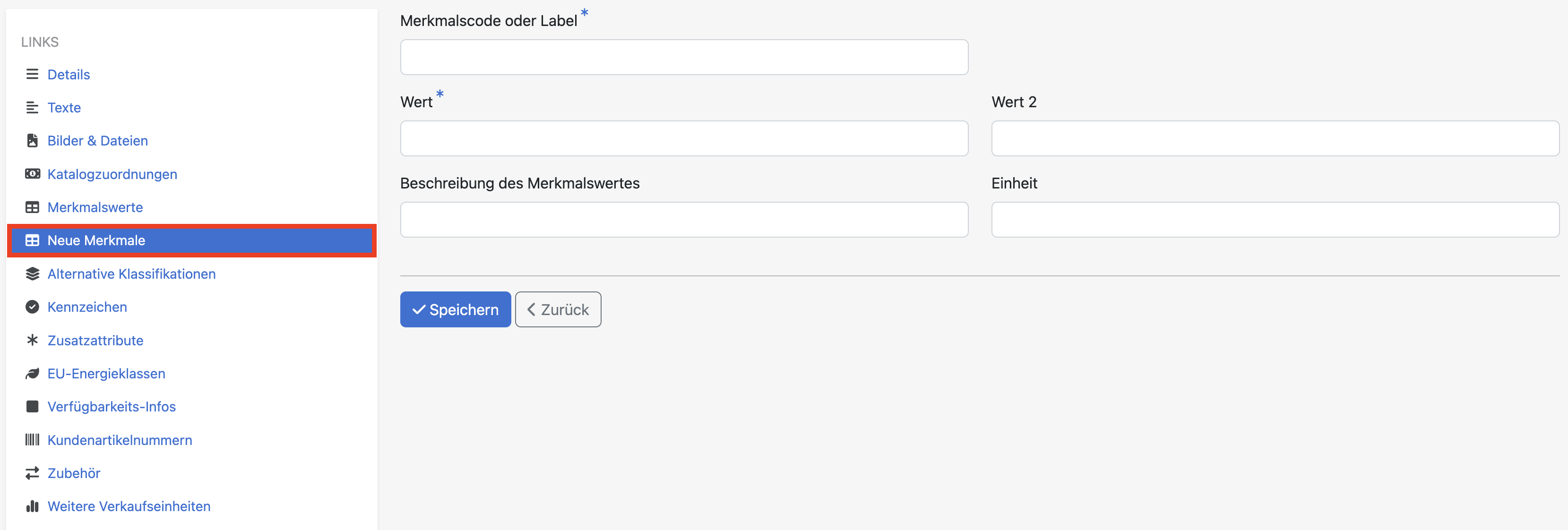 | Beschreibung des Merkmalswertes | Über dieses Element kann das Merkmal näher beschrieben werden. |