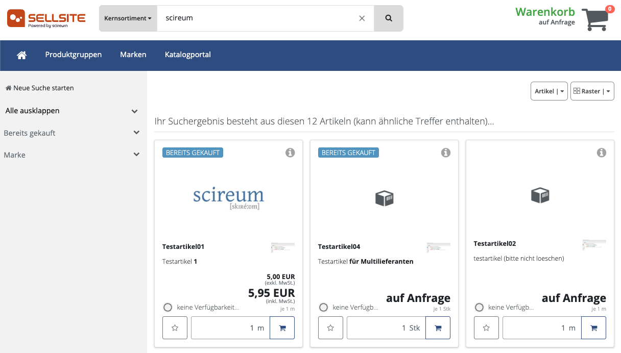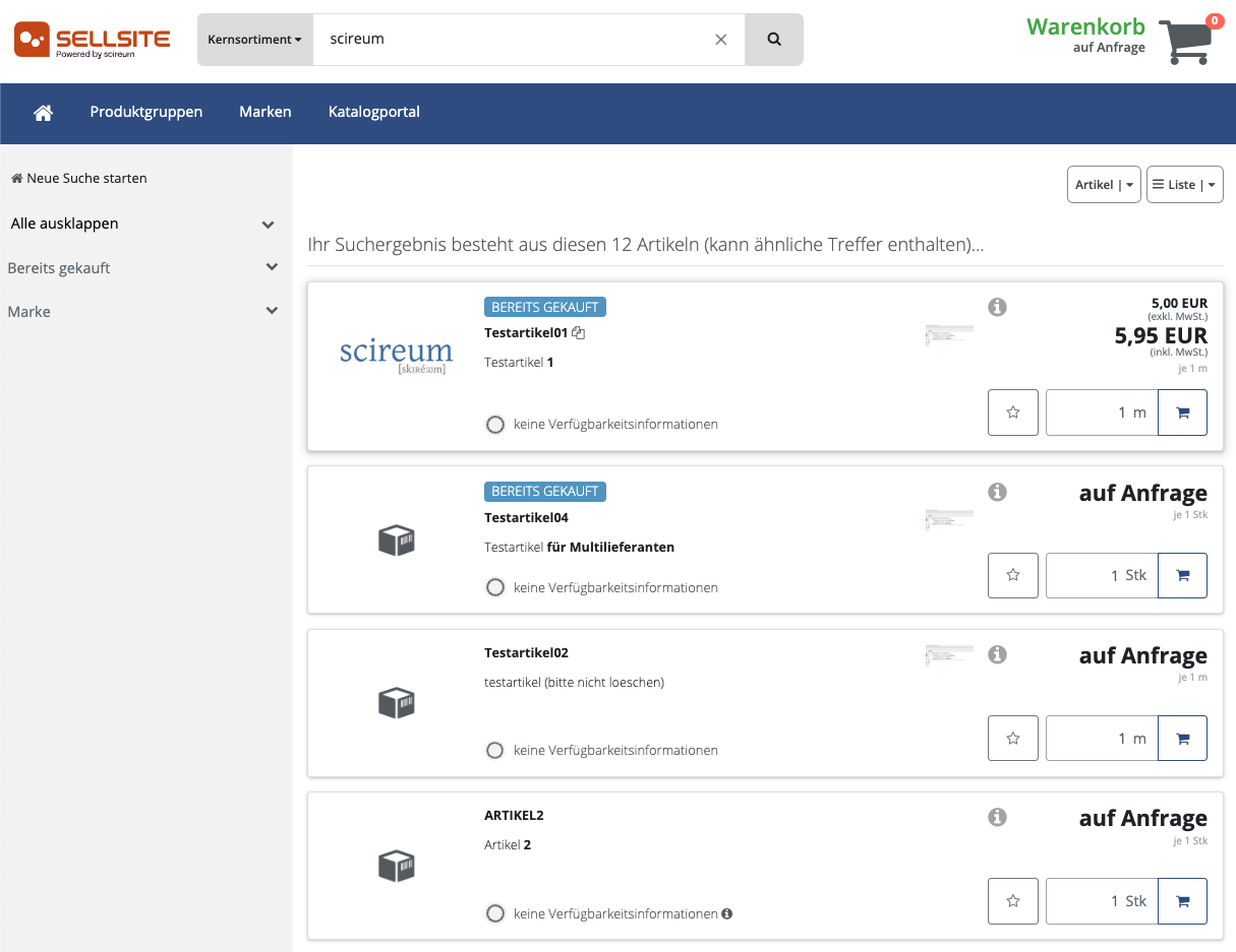 Durch passende Konfiguration lässt sich ein Suchbereich mit Artikeln bestimmter Kataloge